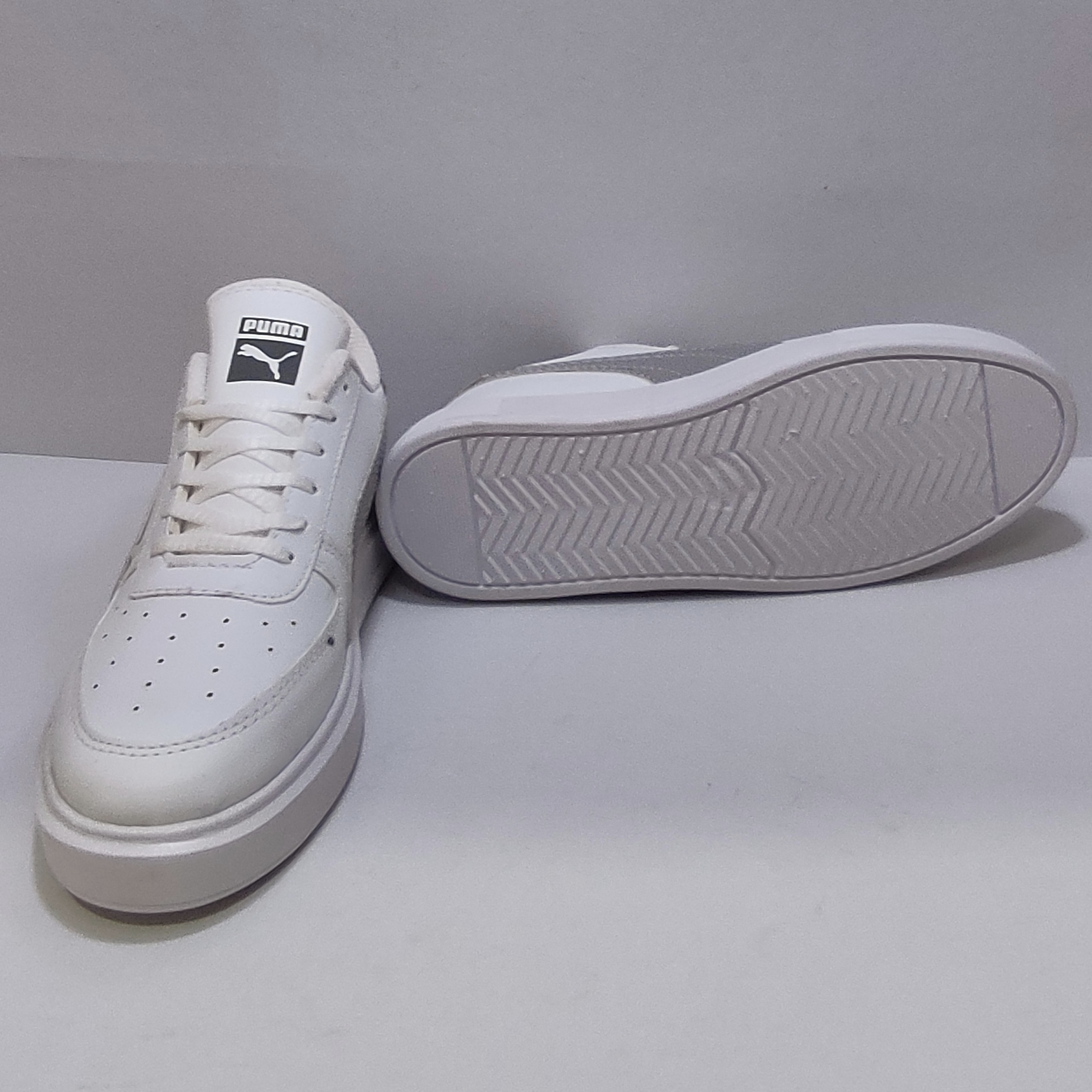 برند: پوما (Puma) مدل: ونس جنس رویه: پارچه مش تنفسپذیر جنس زیره: EVA سبک و ضدلغزش رنگ: سفید و طوسی نوع کاربری: روزمره، اسپرت شهری نحوه بسته شدن: بنددار کشور سازنده: ایران (زیرمجموعه پوما آلمان)